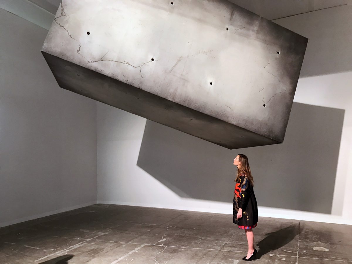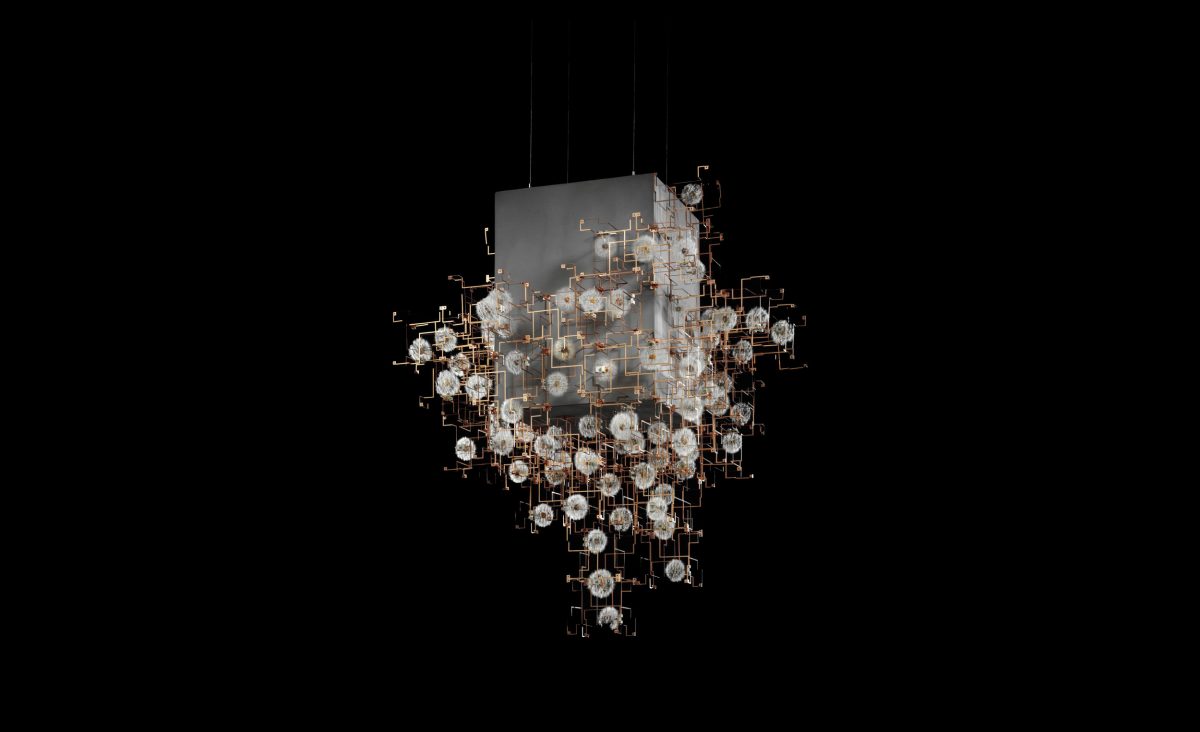 The site-specific exhibition ‘Values of Design’ , housed in the V&A Gallery at the cultural hub ‘Design Society’, in Shenzhen, China, features Studio Drifts Fragile Future Concrete Chandelier.