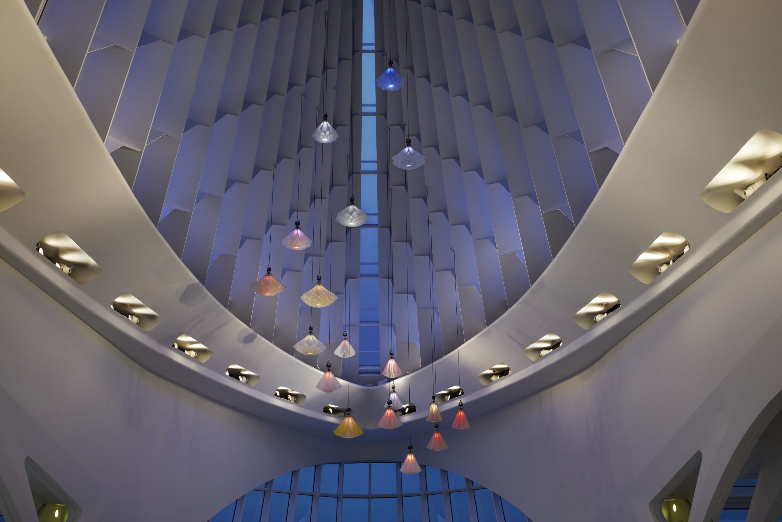 “We are honored that we have the opportunity to immerse our artwork Meadow in the awesome space that is the Calatrava building of the Milwaukee Art Museum,” said Lonneke Gordijn and Ralph Nauta of DRIFT. “As longtime fans, it was a dream to design this artwork specifically to fit Windhover Hall. We worked with the perspective to draw the eye into the height of the open atrium to make visitors wander through the space vertically.”